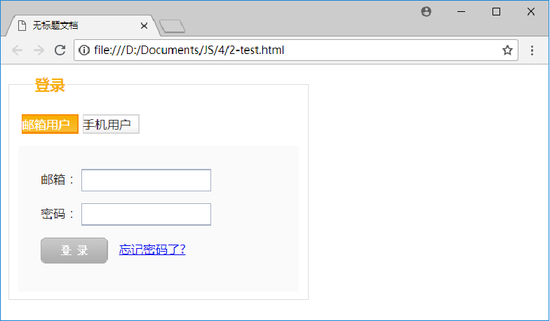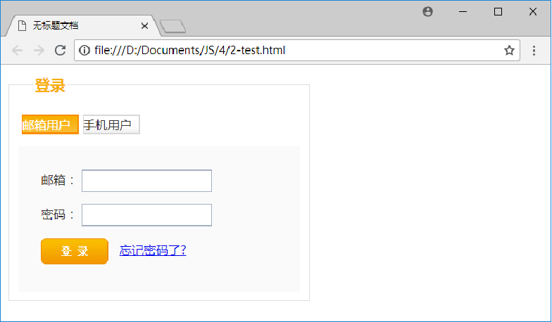 使用 JavaScript 中的 document 对象查找 HTML 元素,实现“登录”按钮的高亮特效 鼠标悬浮于“登录”按钮时,按钮高亮显示;