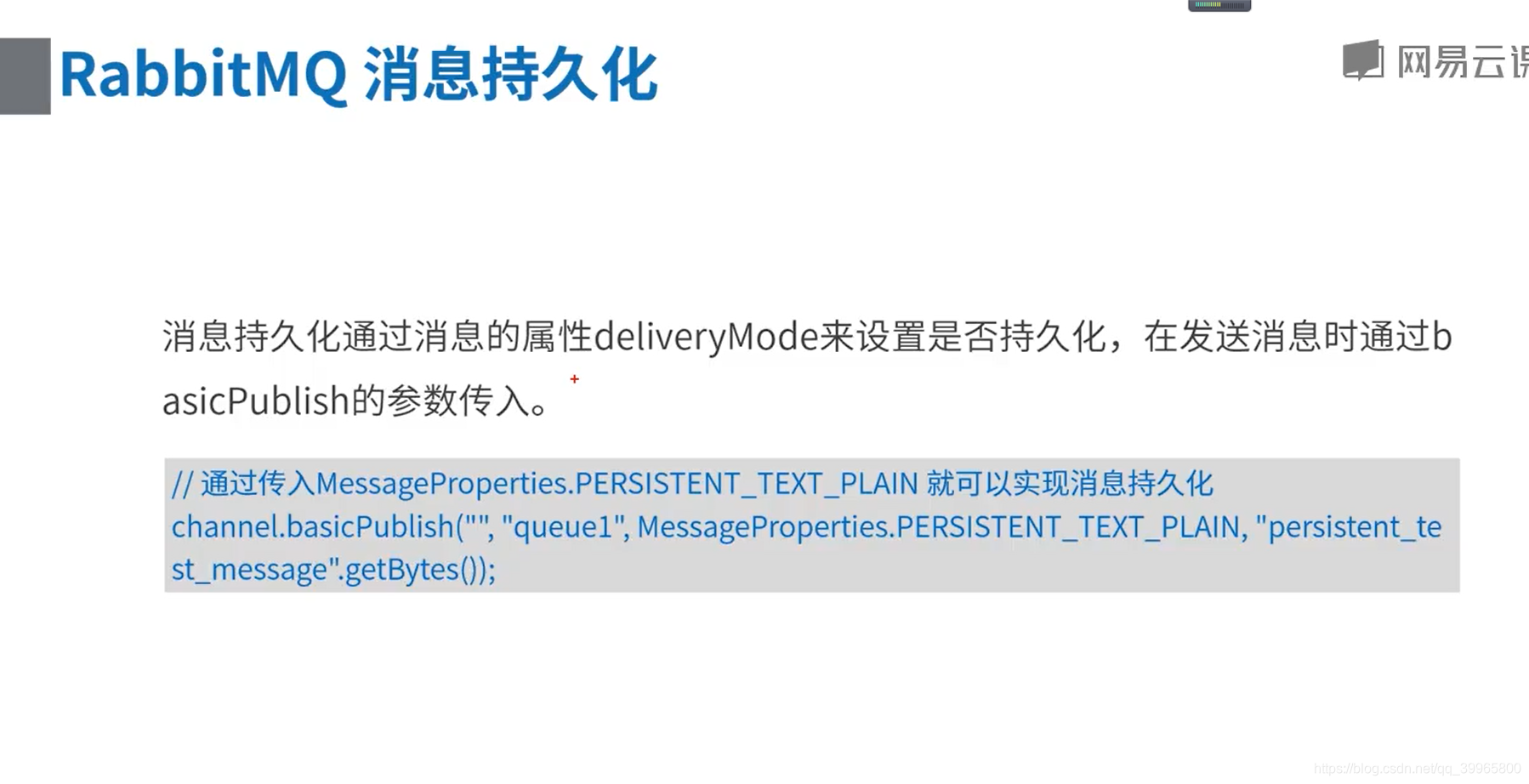 channel.basicPublish("routing_test", "c1", MessageProperties.PERSISTENT_TEXT_PLAIN, message.getBytes());