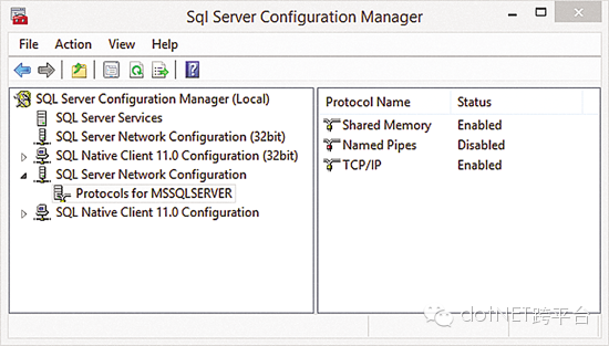 若要结合使用 JDBC River 与 SQL Server,SQL Server 实例需要可通过 TCP/IP 进行访问,默认情况下,此功能禁用。但是,启用也很简单,需要做的就是打开 SQL Server 配置管理器,并在 SQL Server 网络配置下,对于要连接到的 SQL Server 实例,将“状态”值更改为“针对 TCP/IP 协议启用”,如图 3 中所示。执行完此操作后,我应该能够凭借在“服务器名称”中使用本地主机 1433(端口 1433 是通过 TCP/IP 访问 SQL Server 的默认端口)通过 Management Studio 登录我的 SQL Server 实例。