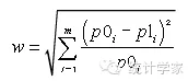 其中,w是效应值,N是总样本大小,df是自由度。此处,效应值w如下定义:
