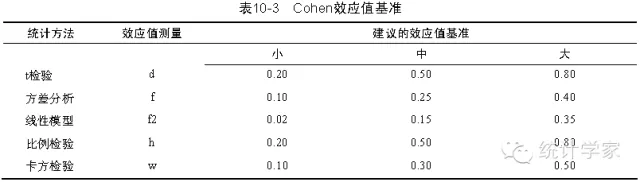 在研究过程时,研究者通常关注四个量:样本大小、显著性水平、功效和效应值。样本大小指的是实验设计中每种条件/组中观测的数目。显著性水平(也称为alpha)由I型错误的概率来定义。也可以把它看做是发现效应不发生的概率。功效通过1减去II型错误的概率来定义。我们可以把它看做是真实效应发生的概率。效应值指的是在备择或研究假设下效应的量。效应值的表达式依赖于假设检验中使用的统计方法。