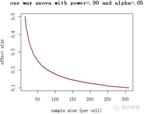 function (k = NULL, n = NULL, f = NULL, sig.level =0.05, power = NULL)其中,k是组的个数,n是各组中的样本大小