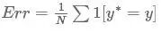 我们的问题可以简化为,如何找到这样一个决策函数,它在未知数据集上能有足够好的表现。至于如何衡量一个二分类模型的好坏,我们可以用分类错误率这样的指标: