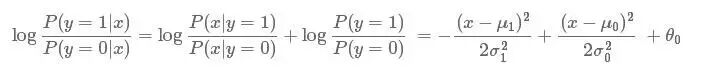 通常假设P(x|y)是高斯分布,P(y)是多项式分布,相应的参数都可以通过最大似然估计得到。如果我们考虑二分类问题,通过简单的变化可以得到: