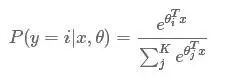 如果\(y\)不是在[0,1]中取值,而是在\(K\)个类别中取值,这时问题就变为一个多分类问题。有两种方式可以出处理该类问题:一种是我们对每个类别训练一个二元分类器(One-vs-all),当\(K\)个类别不是互斥的时候,比如用户会购买哪种品类,这种方法是合适的。如果\(K\)个类别是互斥的,即 \(y = i\) 的时候意味着 \(y\) 不能取其他的值,比如用户的年龄段,这种情况下 Softmax 回归更合适一些。Softmax 回归是直接对逻辑回归在多分类的推广,相应的模型也可以叫做多元逻辑回归(Multinomial Logistic Regression)。模型通过 softmax 函数来对概率建模,具体形式如下: