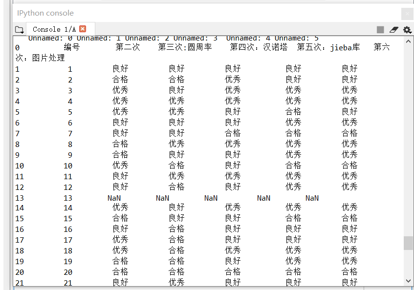 df=pd.read_excel('D:/Python文件/Python成绩.xlsx',index_col=None,na_values=['NA'])