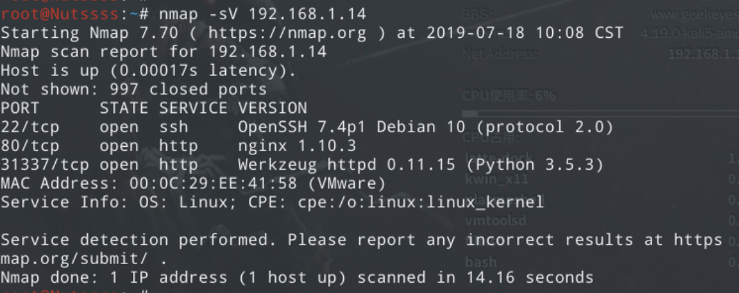 可以发现除了20 80端口,有一个很引人注目的端口 31337,一般来说大端口都是得特别注意的。
