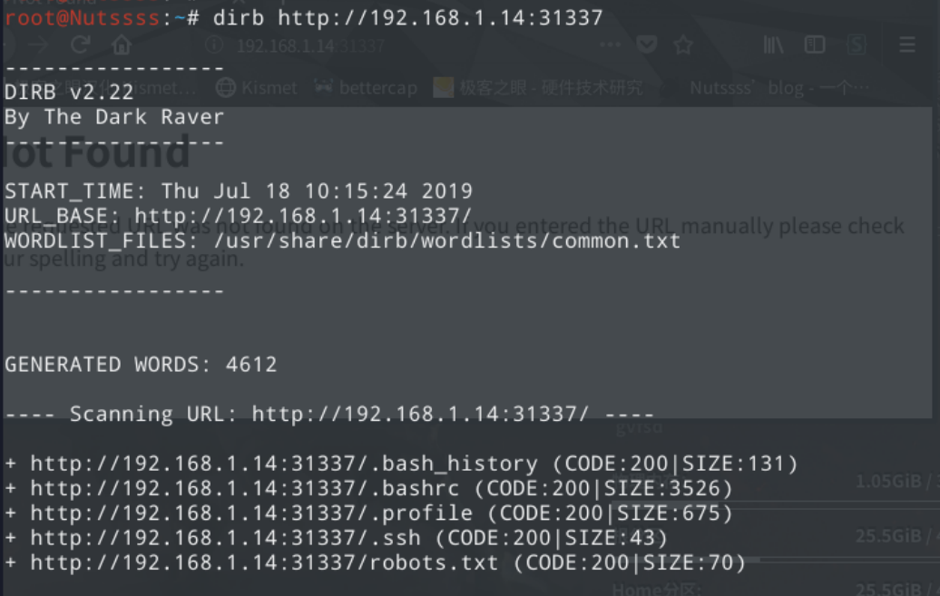 探测大端口的信息,用dirb命令