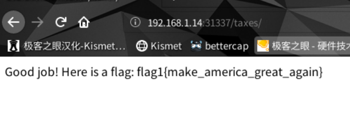 图中前两个都是正常的,唯独有个/taxes,进去/taxes查看,发现有个flag{}有点欣喜,结果细看发现是假的,那就重来试一下ssh