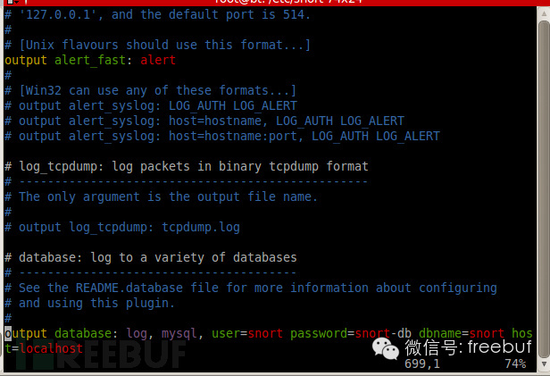 0X03 设置snort把log文件输出到 MySQL 数据库中