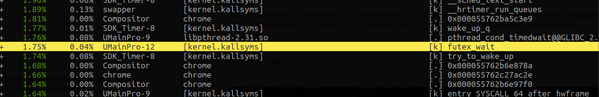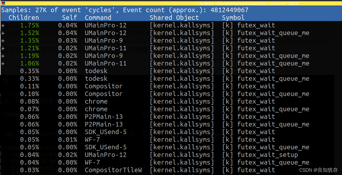 - sudo perf report -n --stdio可以生成一个详细的报告。