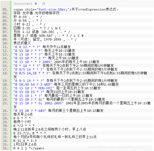 setCronExpression()方法可以设置定时器触发时间,具体设置规则可以参考下图