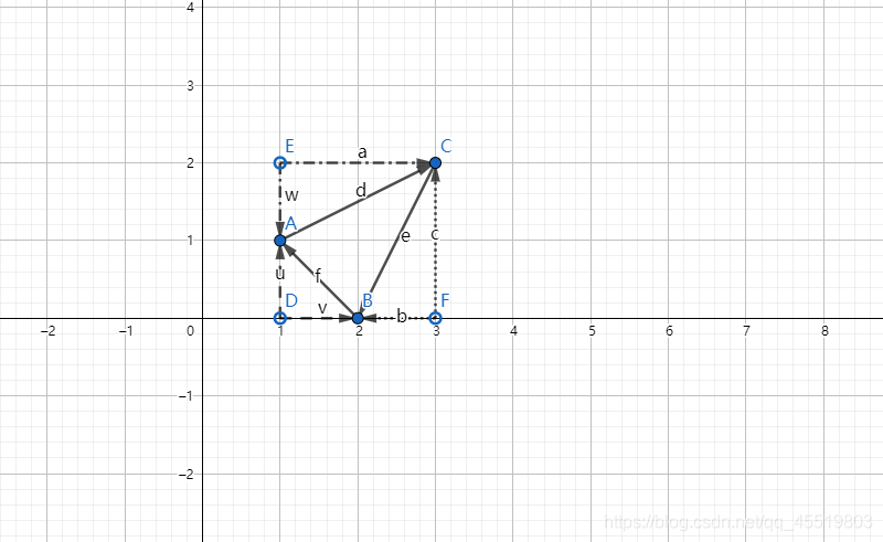 虚点是为了求边长而设定的辅助点,而实线是所求三角形的边.虚线是同辅助点建立的辅助边,由于是成