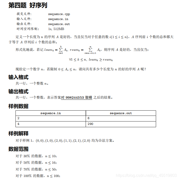 1的,所以容易得出该要求的简化证明:该序列的第一个元素大于等于该序列其他元素之和才为题目定义的"好数列"