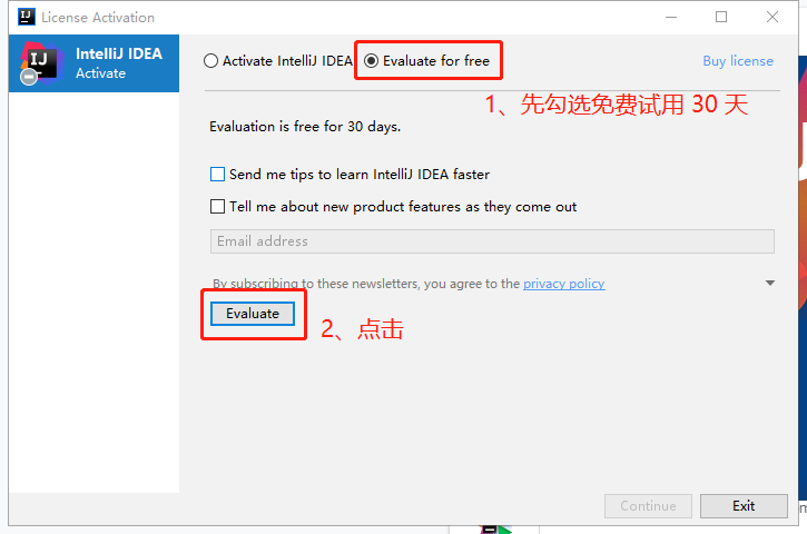 把破解包两个文件放进bin目录下,这一步极为重要!然后打开idea,首先先试用!