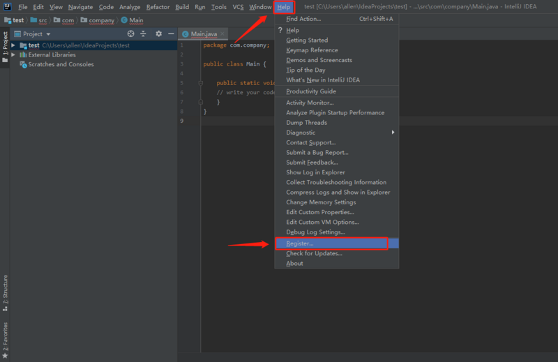 破解补丁配置完成以后,开始填入激活码,点击菜单栏 Help -> Register:
