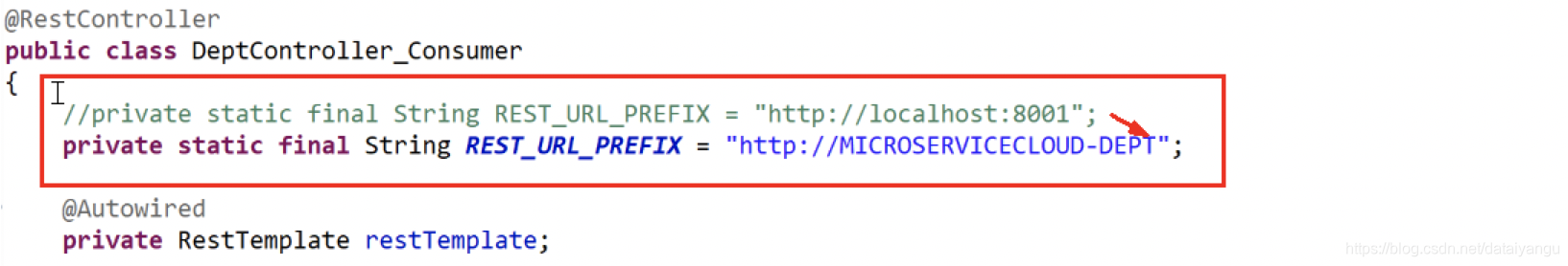 private static final String REST_URL_PREFIX = "http://MICROSERVICECLOUD-DEPT";