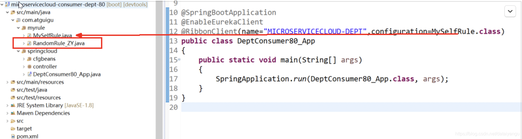 参考源码修改为我们需求要求的RandomRule_ZY.java(和上面的MySelfRule在同一个目录下)