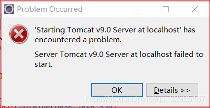 - Starting Tomcat v9.0 Server at localhost' has encountered a problem