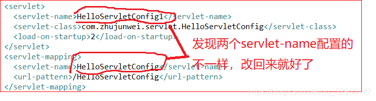 发现两个servlet-name配置的不一样,修改过后Tomcat可以正常启动了。