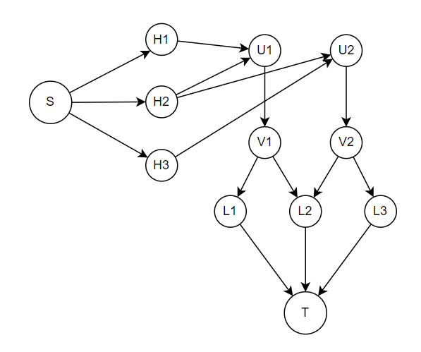 因为流网络是单位网络,所以时间复杂度为 \(O(n^3)\)。(\(n,H,W\) 同阶)