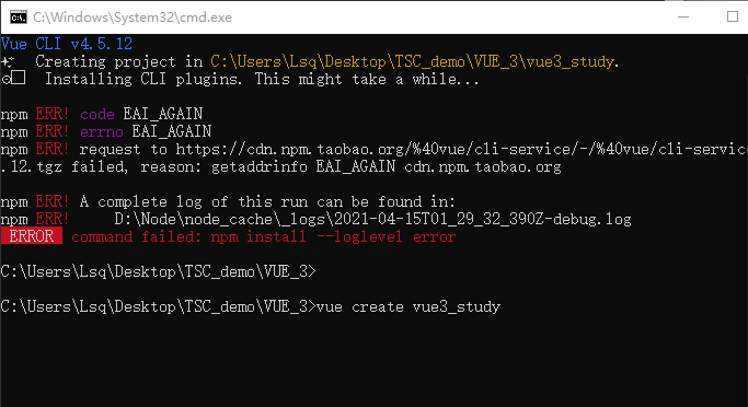 做完上面的步骤后再次重新操作创建vue3项目发现第二个错误