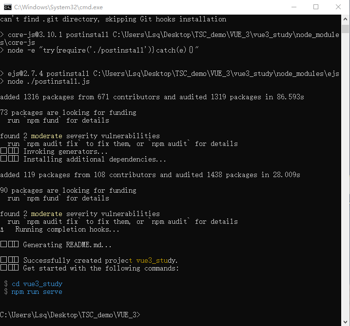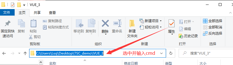 创建项目文件的目录删除项目文件,如我的是:C:\Users\Lsq\Desktop\TSC_demo\VUE_3,我在VUE_3目录下创建了vue_study项目文件,则删掉vue_study文件