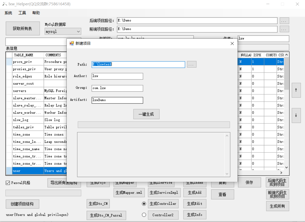 一键生成项目 SpringBoot+MyBatis代码生成器 支持Oracle MySQL PostgreSQL