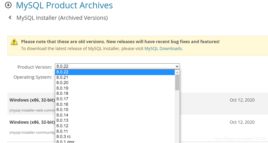 MySQL Installer其他版本下载地址 :https://downloads.mysql.com/archives/installer/