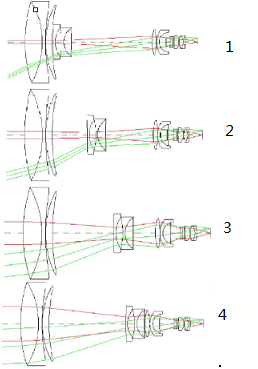 随着镜头组的移动,到4的时候,焦距较长,视场变小。
