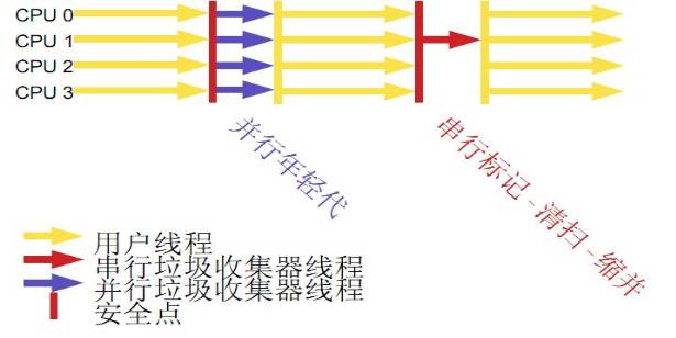 对年轻代进行并行垃圾回收,因此可以减少垃圾回收时间。一般在多线程多处理器机器上使用。使用-XX:+UseParallelGC.打开。并行收集器在J2SE5.0第六6更新上引入,在Java SE6.0中进行了增强–可以对年老代进行并行收集。如果年老代不使用并发收集的话,默认是使用单线程进行垃圾回收,因此会制约扩展能力。使用-XX:+UseParallelOldGC打开。