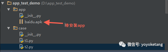 2.在工程下再建个case文件夹,写用例时候先获取app的绝对路径