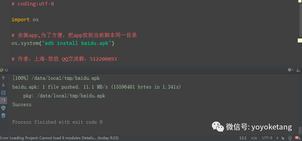 2.也可以用python执行adb命令安装app,代码实现如下: