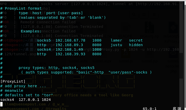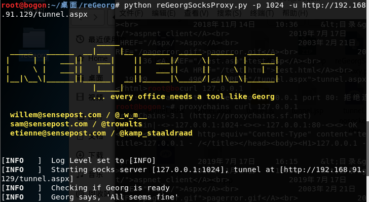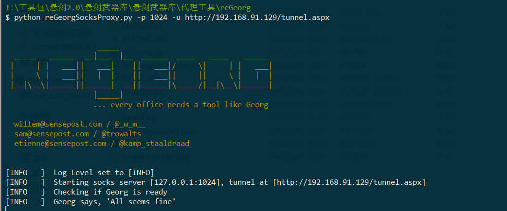 python reGeorgSocksProxy.py -p 1024 -u http://192.168.91.129/tunnel.aspx