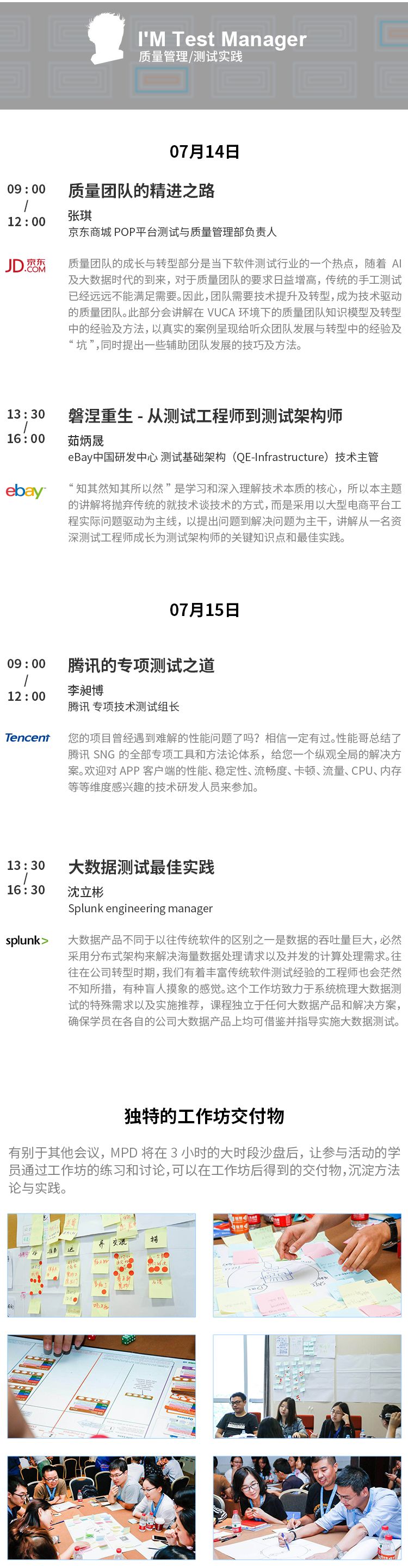 那么,如何让自己成为驱动质量和工程效率的动力,像那些优秀测试负责人那样引领变革而不是被变革呢?不妨让我们在即将于7月14-15日举办的北京MPD工作坊上一起来学习由京东商城、eBay中国研发中心、腾讯、Splunk公司的技术大牛为我们讲述的《质量驱动的研发效能提速》的话题。