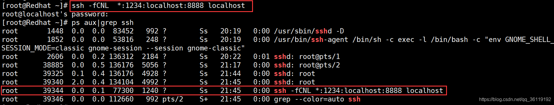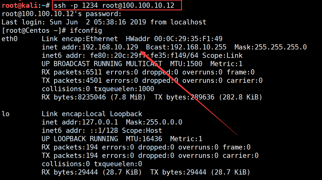 ssh -p 1234 root@100.100.10.12 #ssh连接到公网服务器的1234端口