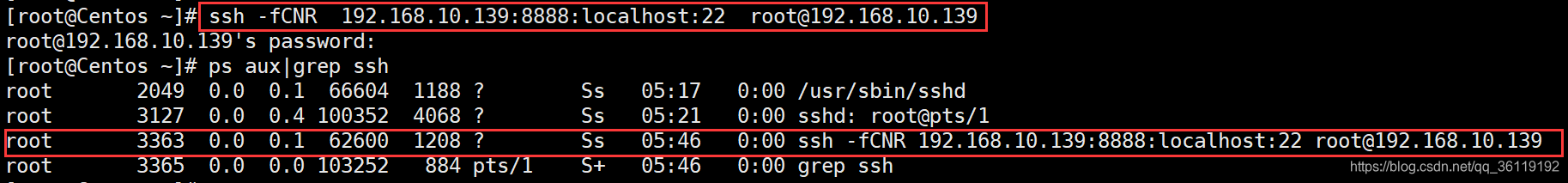 ssh -fCNR 192.168.10.139:8888:localhost:22 root@192.168.10.139 #意思就是将A机器的22号端口的流量都转发给B机器的8888端口