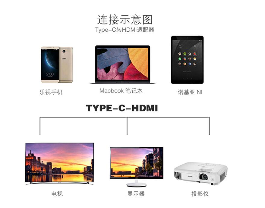 CS5265替代LT877设计Type-C转HDMI 2.0 4K高清投屏方案应用方式: