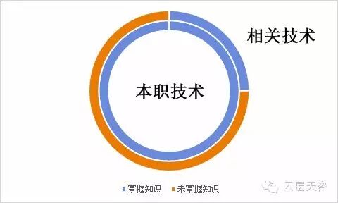这样的双圈结构就会出现,除了应该掌握的本职技术,还需要在别的技术上有所突破,于是开发开始除了基本的后台开发技术,还开始扩展数据库、前端等开发技术。而测试人员在自己测试技术都还不能完全接受的情况下,又没有足够的渠道来了解测试技术的更多方方面面,于是去学习开发技术,而进一步发现开发技术可以学习和参考的内容丰富全面,所以开始觉得测试Low了。