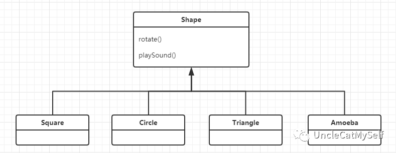 在面向对象的编程中,我们需要定义三个类分别是Square、Circle、Triangle代表四方形、圆形与三角形,且他们都要显示对应的rotate()、playSound()方法,这样一看好像要写很多重复的代码。但是!
