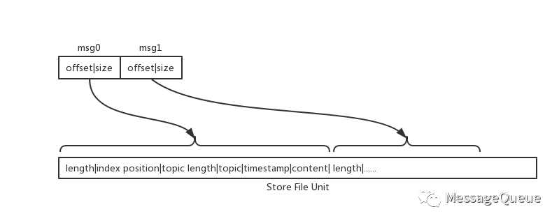 所以这里会需要一个结构来索引消息。索引到一条完整的消息只需要两个元素:偏移量、大小。只要有这两个元素就可以从存储日志中读取一段完整的数据(一条完整的消息)。
