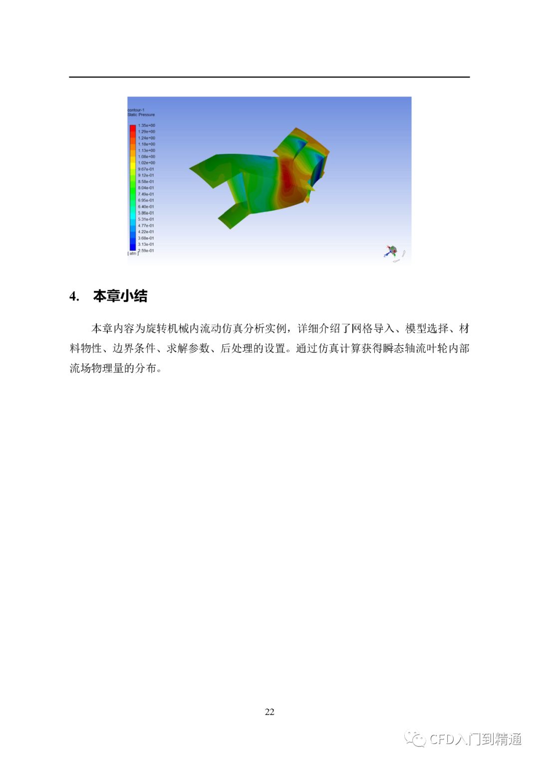 本算例使用ANSYS Fluent 19.0软件,对轴流压缩机内部流动进行仿真,文档内包含详细的网格导入、模型选择、材料物性、边界条件、求解参数、后处理的设置。通过仿真计算获得叶轮机械内瞬态流场和温度场等物理量的分布。