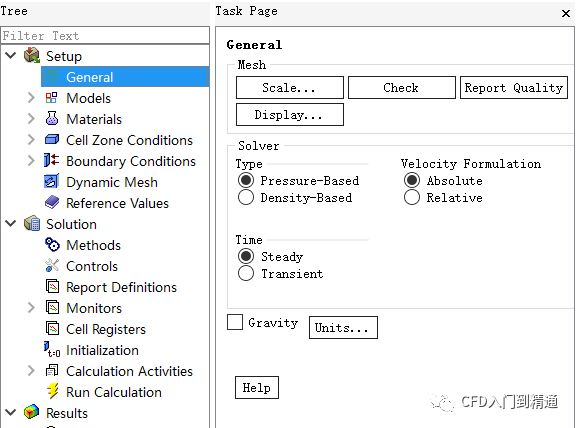 在最左侧的树中,鼠标左键双击【Setup】>【General】,进行网格相关的操作以及选择求解器。