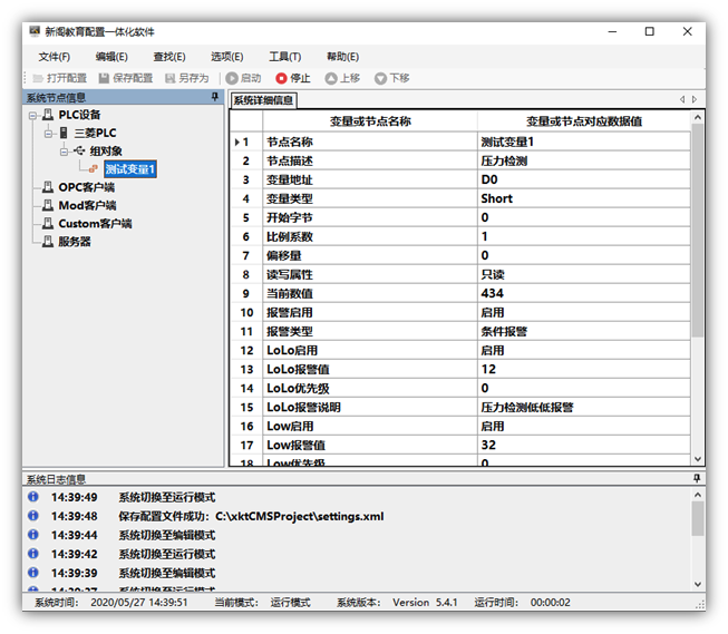 通信测试平台仅仅只是用于测试通信是否正常,实现正常的单变量数据读取和写入。但是如果是项目级别开发,还需要有一套更完善的通信架构,这里我采用的是自主开发的上位机通信配置一体化软件(简称CMS配置软件)。