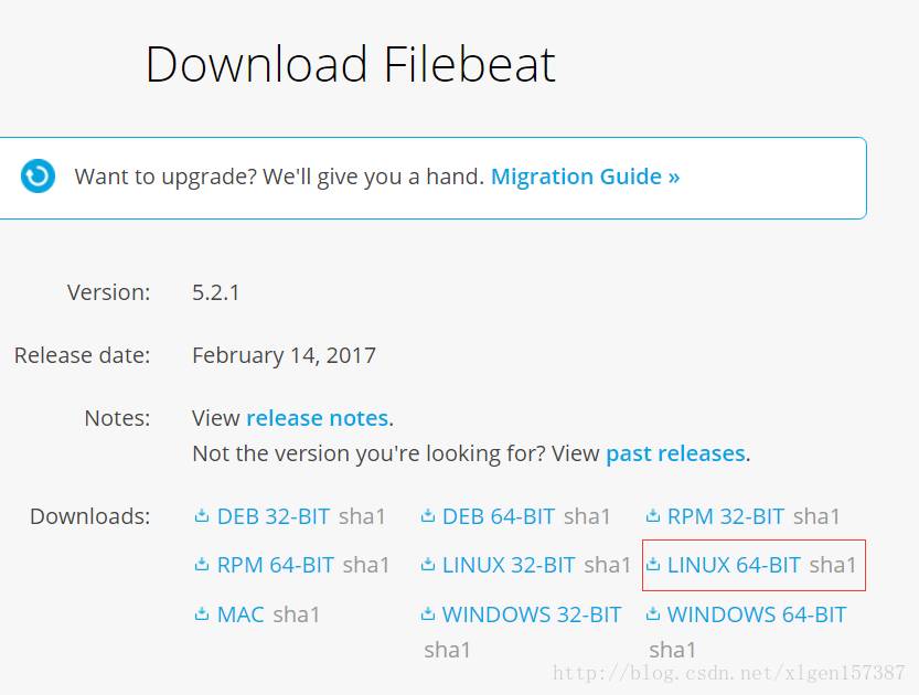 (1)下载地址:https://www.elastic.co/downloads/beats/filebeat