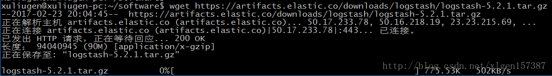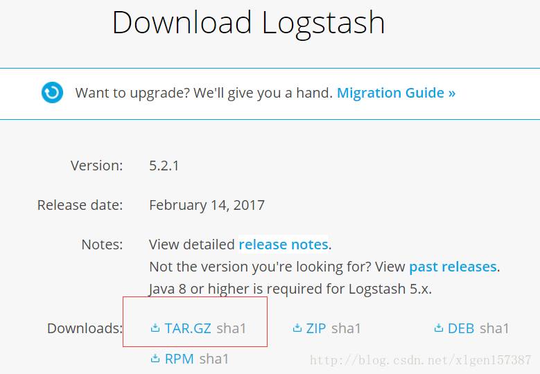 这里为:https://artifacts.elastic.co/downloads/logstash/logstash-5.2.1.tar.gz