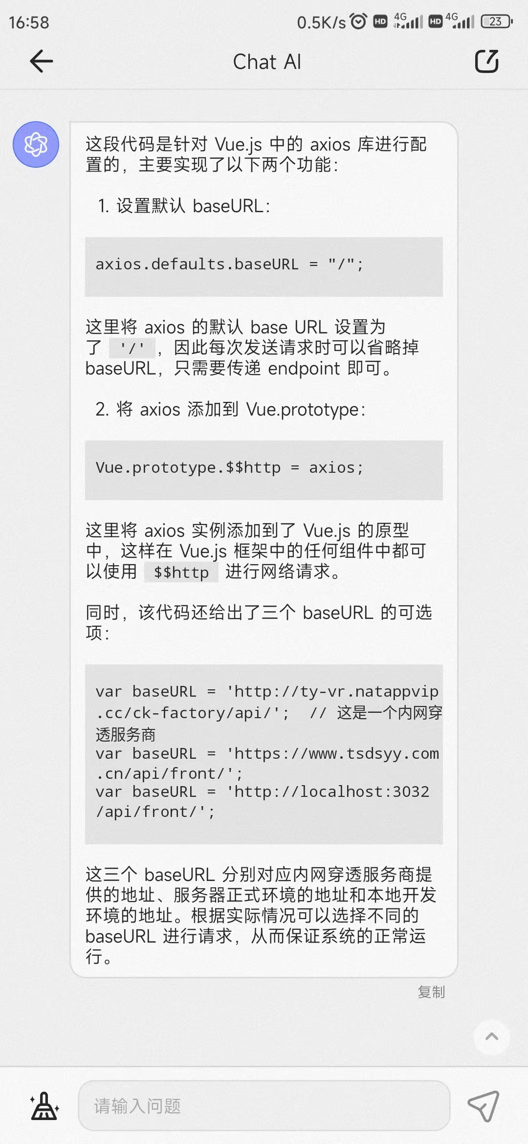 上图是狐猴浏览器默认提供的chatTPG的ai的使用,我发送不完整代码,也可以准确的猜测出代码的含义。