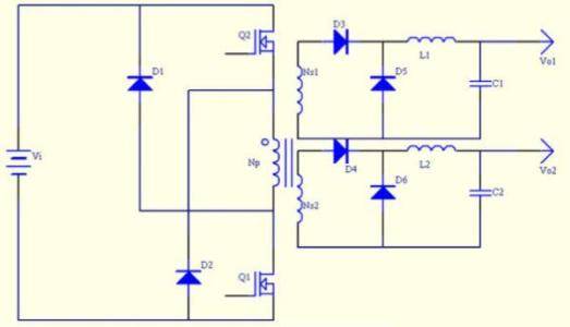 克服了正激变换器中开关电压应力高的缺点,每个开关管只需承受输入直流电压,不需要采用特殊的磁复位电路就可以保证变压器的可靠磁复位。