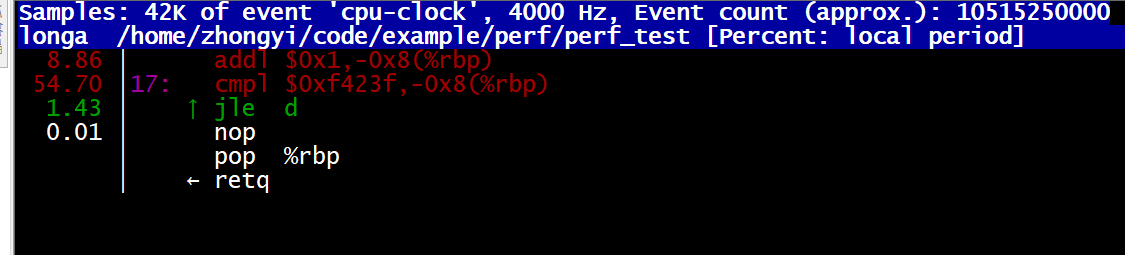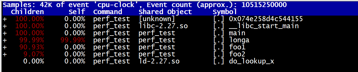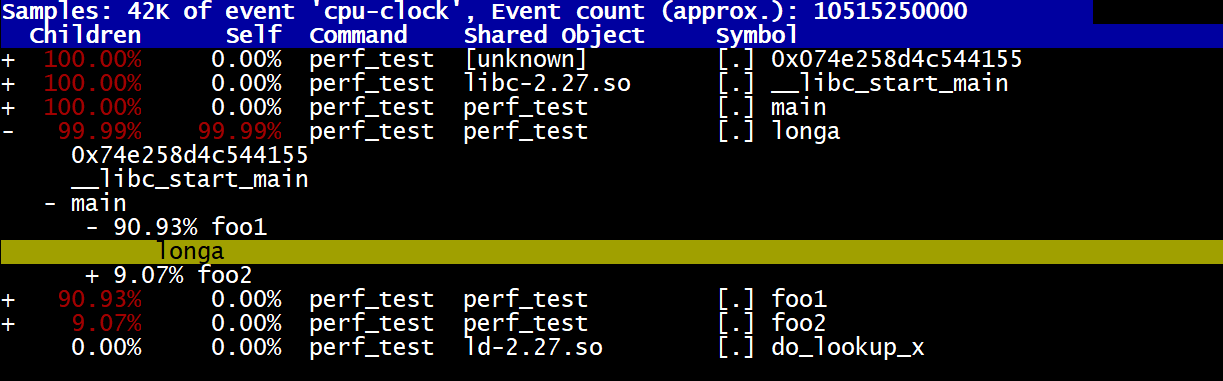 我们可以看到longa符号占用了perf_test程序的99%的CPU资源。