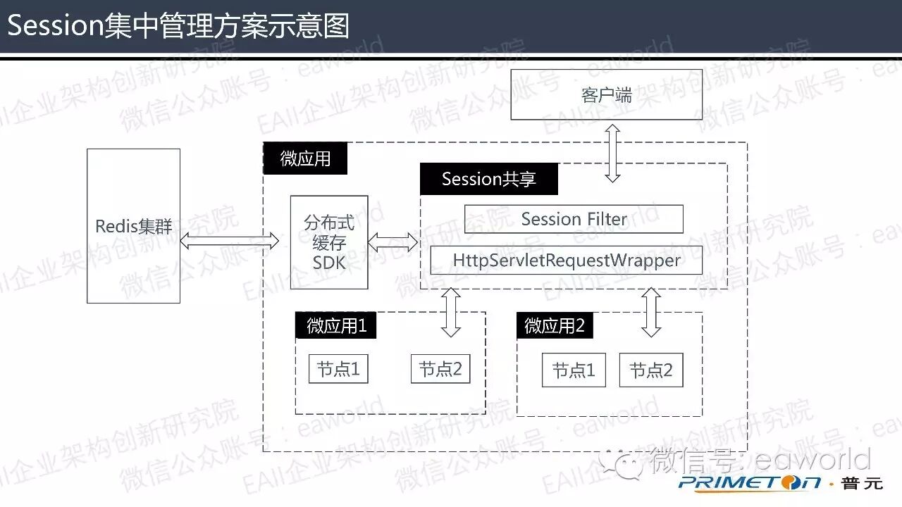 经过设计,微服务架构中的Session集中管理示意图如下。
